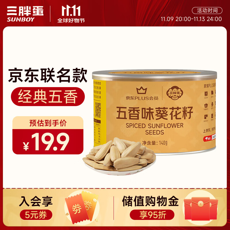 包邮 三胖蛋五香瓜子140g罐装 坚果炒货大颗粒打手葵花籽 解馋办公室小零食